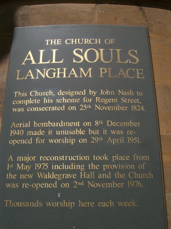 All Souls Langham Place Church La chiesa All Souls Langham Place è situata a nord di Oxford Circus, all’inizio di Regent’s St.